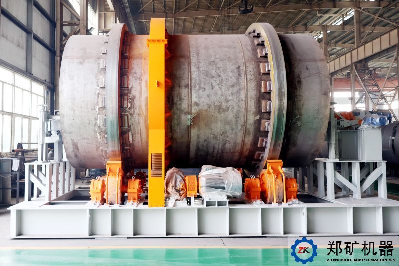 在機架裝置上安裝有托輪支撐裝置、擋輪裝置、傳動裝置等。托輪支撐裝置起支撐筒體的作用。由托輪、托輪軸、軸承座等組成。由于筒體是傾斜安裝在托輪上,擋輪裝置能夠限制筒體的軸向位移。